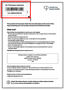 - Place the small sealable bag with the hair sample clearly stating your unique reference number and name in a secure mailing envelope.