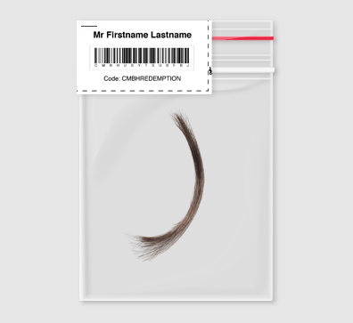 - Once the hair sample is collected, please place strands into a small sealable bag ensuring the hair remains dry and secure during transit