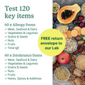 - Reactions to 120 items (60 Allergy items & 60 Intolerance items)