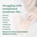Do you suspect that food or environmental factors are behind your symptoms? Whether it’s digestive discomfort, skin irritations, breathing issues, or unexplained reactions, it can be challenging to pinpoint the cause. Our Food & Environmental Allergy Test is designed to provide clarity by analysing your reactions to an extensive range of 117 allergens across both food and environmental categories.